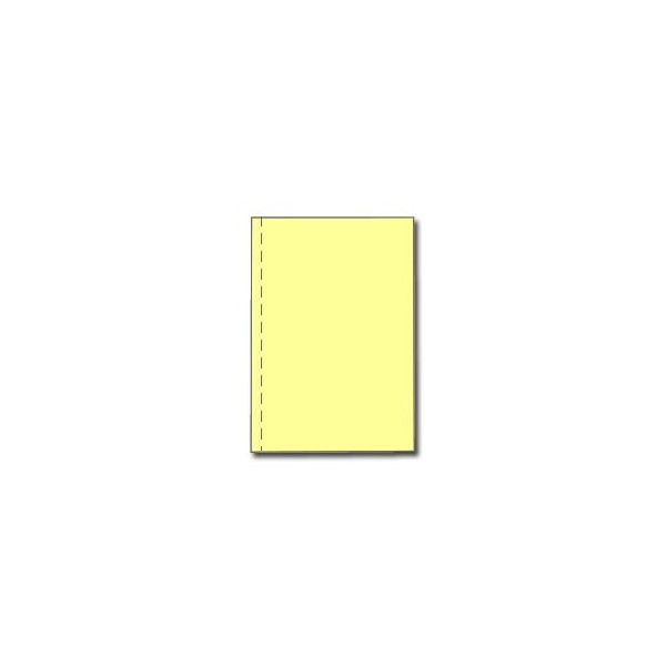 Micro-perforation: La micro-perforation permet de réaliser un carnet de liasses autocopiantes personnalisées à souche. Les feuillets A4 sont micro-perforés à 1cm du bord long (Voir photo ci dessus). La bande de 1 cm permet de relier un ensemble de liasses avec une agrafe ou autre système (La colle autoséparatrice n'est pas adaptée dans ce cas car les liasses seraient séparées et non en bloc). Le dernier feuillet de la liasse restera en souche comme dans un carnet de chèque.